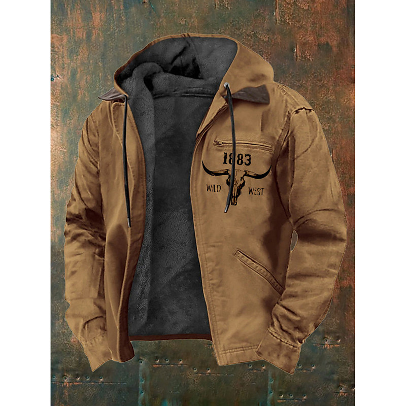 Men's Full Zip Hoodie Fleece Jacket Fleece Hoodie Brown Brown 2 Hooded Cow Letter Pocket Print Sports Outdoor Casual Daily Polyester Streetwear Retro Casual Fall Winter Clothing Apparel Hoodies