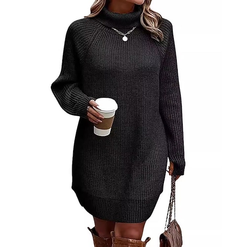 Per donna Mini Abito Abito in maglia Moda Moderno Quotidiano Ferie Uscire Vestibilità regolare Semplice Manica Lunga Dolcevita Nero Bianco Verde militare Fucsia Autunno Inverno