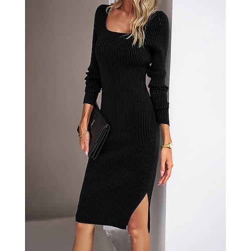 Per donna Abito Midi Abito in maglia Attillato Tubino Moda Moderno Quotidiano Ferie Weekend Vestibilità regolare Semplice Manica Lunga Collo quadrato Blu Nero Verde Albicocca Primavera Autunno