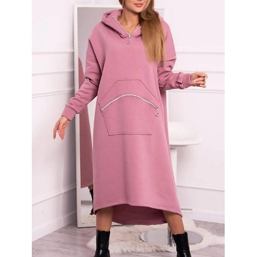 Per donna Abito Midi Abito con Cappuccio Vestito Casual Moda Moderno Quotidiano Ufficio Vacanza Vestibilità regolare Semplice Manica Lunga Con Cappuccio Rosa Rosso Verde Grigio Primavera Autunno