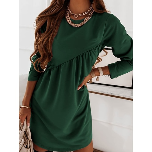 Per donna Mini Abito Vestito T-Shirt Casual All'aperto Quotidiano Ferie Vestibilità regolare Semplice Manica Lunga Girocollo Vino Blu Verde Cachi Primavera Autunno