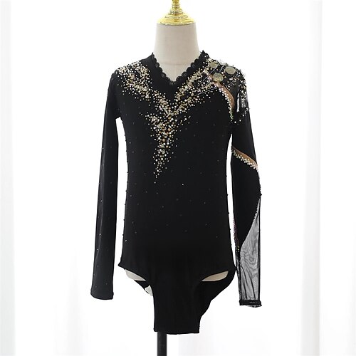 Maglia da pattinaggio artistico Per uomo Ragazzi Pattinaggio sul ghiaccio Top Nero Patchwork Spandex Alta elasticità Allenamento Competizione Vestiti da pattinaggio sul ghiaccio Classico Cristallo