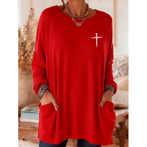 Per donna Maglietta Grafico Lettera Vintage Moda Elegante Manica Lunga Girocollo Top Regolari Quotidiano Uscire Weekend Tasca Stampato Nero Rosa Rosso Verde Beige Primavera Autunno Inverno