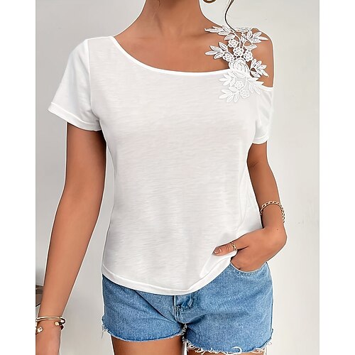 Per donna Camicia Semplice Casual Manica Corta Asimmetrico Top Regolari Quotidiano Ferie Uscire Uncinetto Nero Bianco Rosa Albicocca Rosa Estate Primavera
