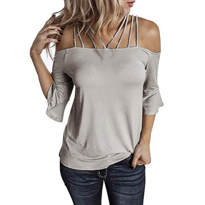 Women's T Shirt Plain Fashion Modern Casual Long Sleeve Off Shoulder Regular Tops Daily Weekend White Pink Gray Summer Spring Fall