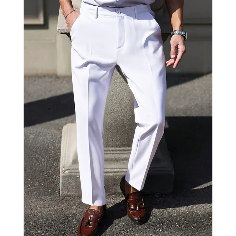 Men's Dress Pants Trousers Chinos Pocket Buttons Plain Comfort Formal Party Work Fashion Classic Style Black White Micro-elastic