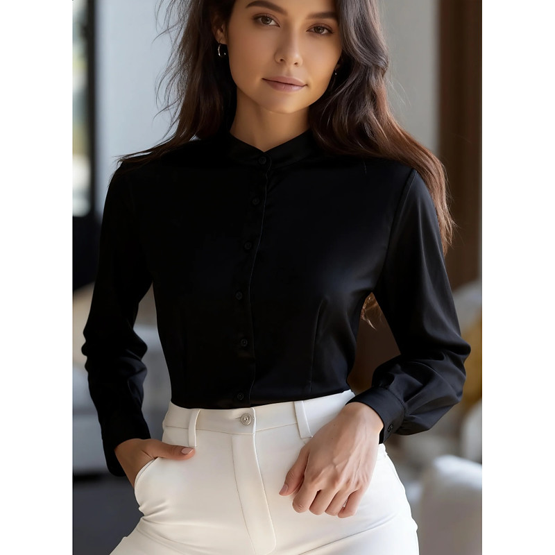Women's Blouse Plain Daily High Neck Regular Tops Black White Apricot Gray Fall