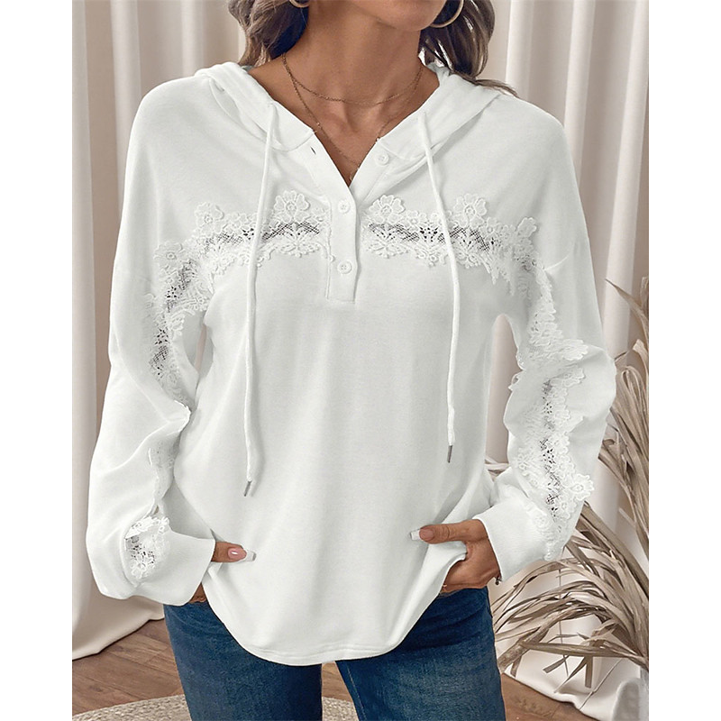 Women's Pullover Hoodie Sweatshirt Hoodies Plain Warm Fashion Streetwear Long Sleeve Hooded Regular Tops Work Street Dailywear Drawstring Buttons White Fall Winter