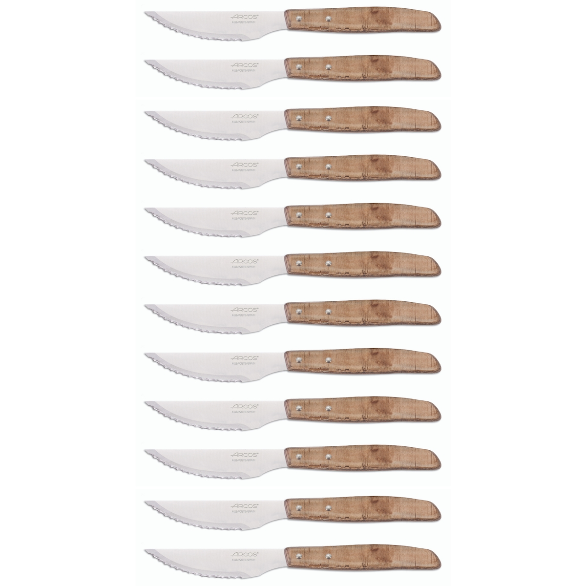 Arcos Table Messer - Box 12 Stück Steakmesser Tafelmesser - Klinge Nitrum Edelstahl 110 mm - HandGriff Pack-Holz Farbe Braun (12 pcs)