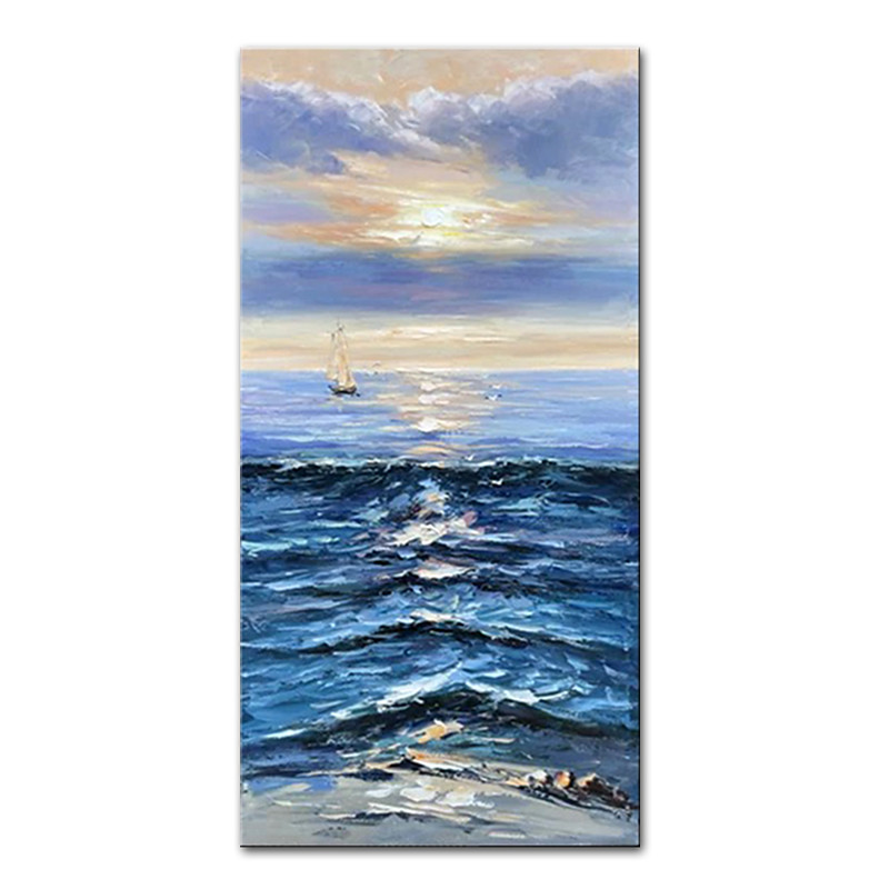 Mintura Handmade Boat Landscape Oil Paintings On Canvas Wall Art Decoration Modern Abstract Ship Pictures For Home Decor Rolled Frameless Unstretched Painting