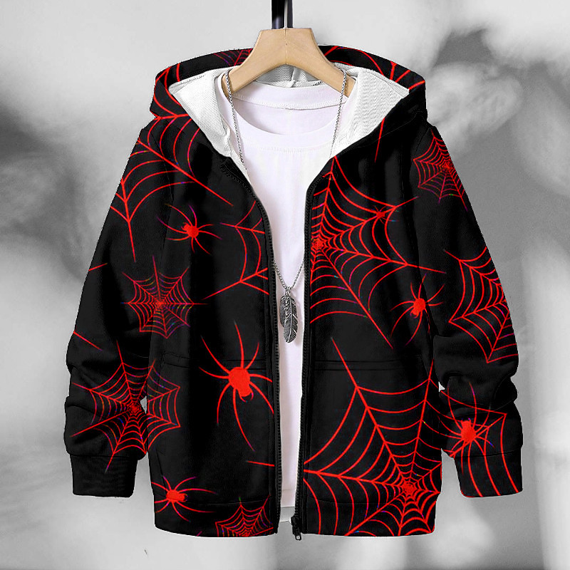 Boys 3D Spider Hoodie Coat Outerwear Long Sleeve 3D Print Fall Winter Fashion Streetwear Cool Polyester Kids 4-12 Years Outdoor Casual Daily Regular Fit