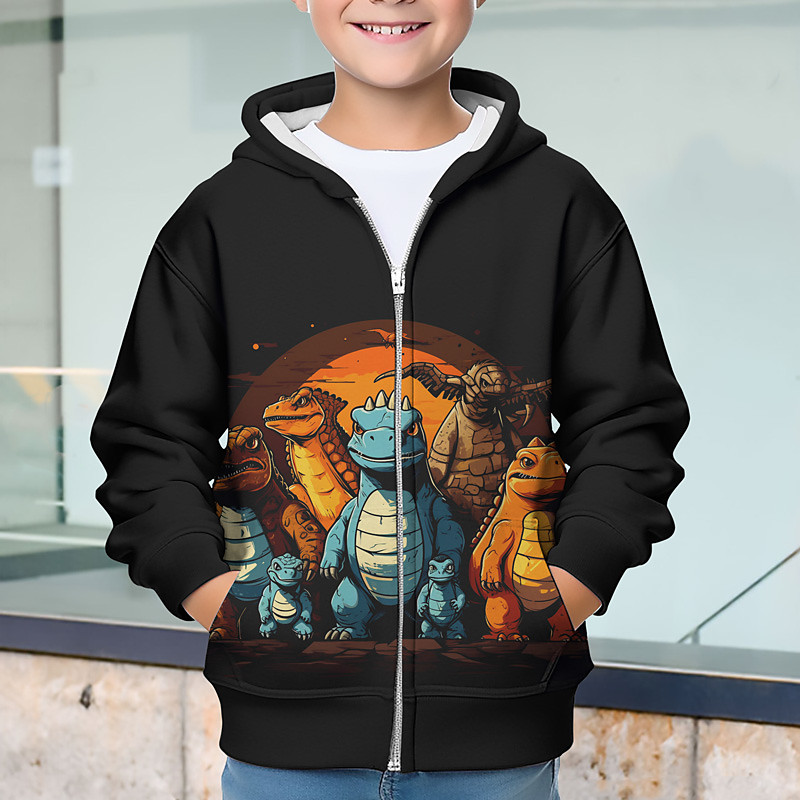 Boys 3D Dinosaur Hoodie Coat Outerwear Long Sleeve 3D Print Fall Winter Fashion Streetwear Cool Kids 3-12 Years Outdoor Casual Daily Regular Fit