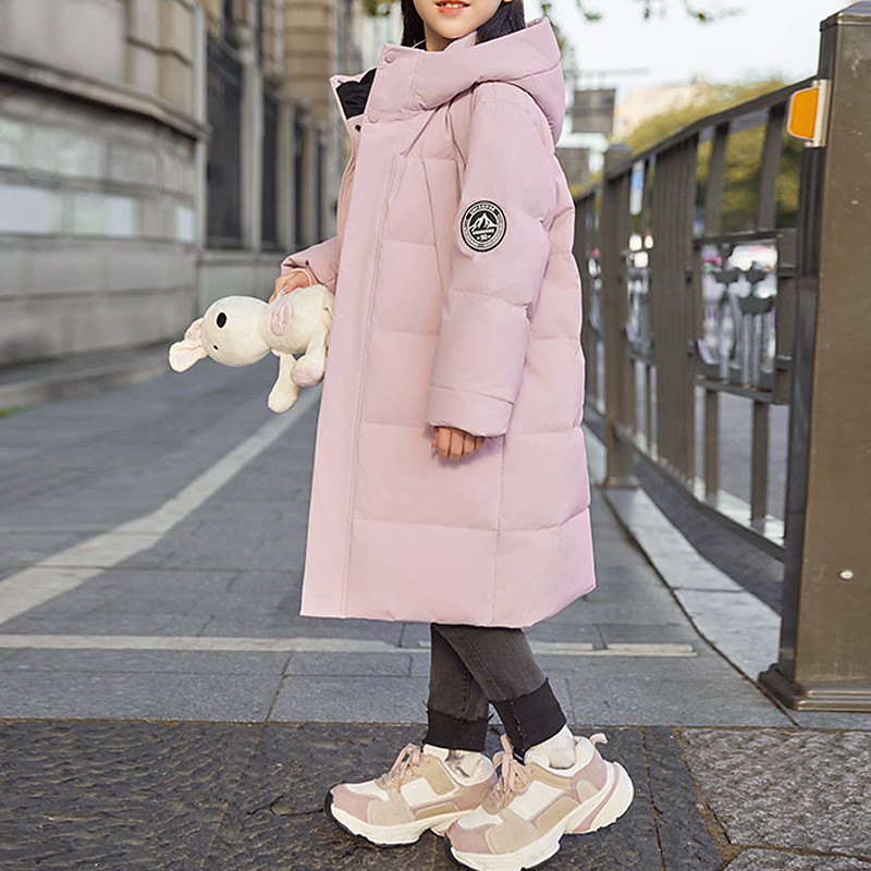 Kids Girls' Down Jacket Puffer Jacket Letter Sports Pocket Keep Warm Windproof Outdoor Coat Outerwear 4-12 Years Winter Black Pink Purple