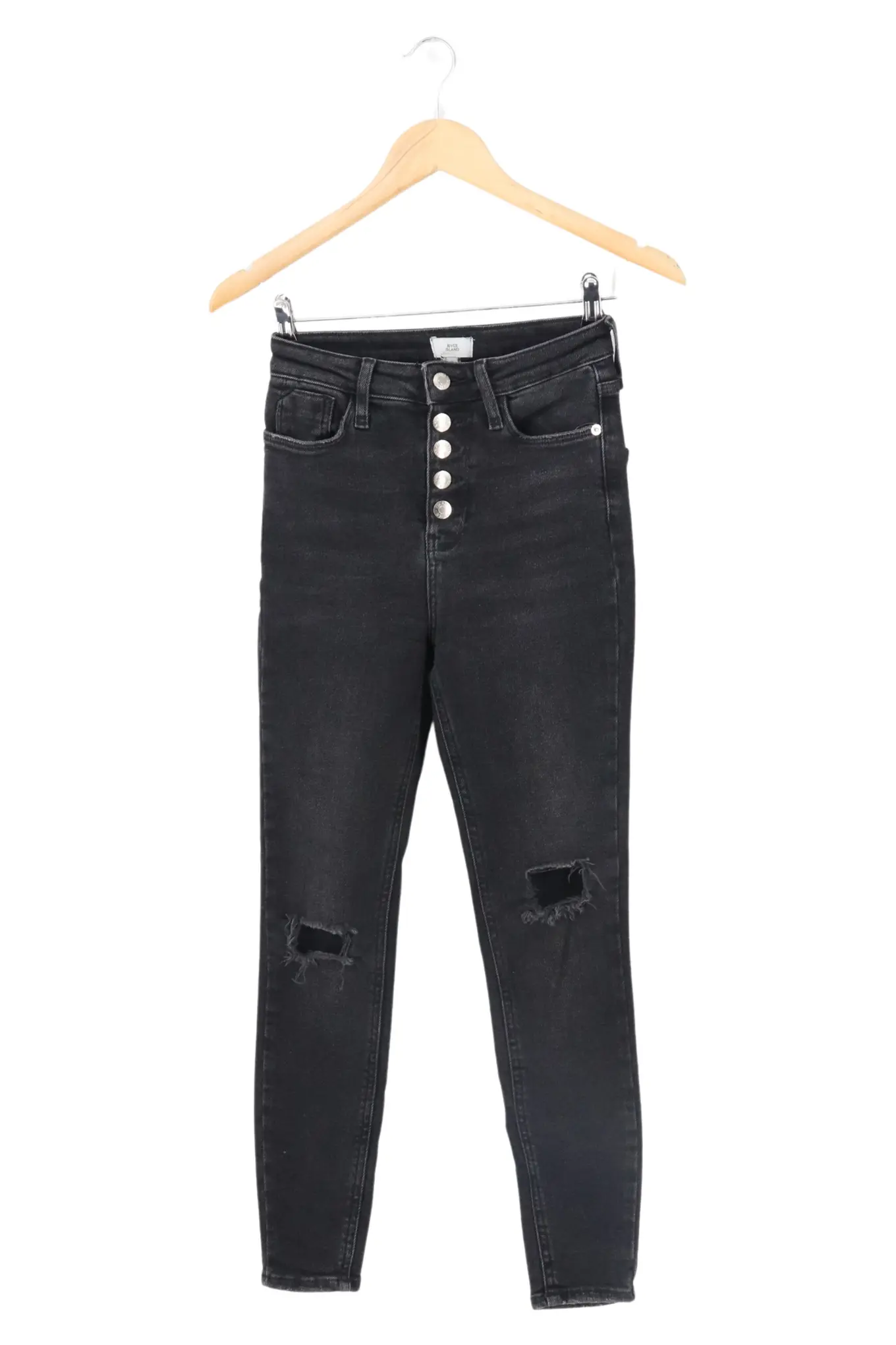 RIVER ISLAND Jeans Slim Fit Gr. 34 Schwarz Löcher Damen
