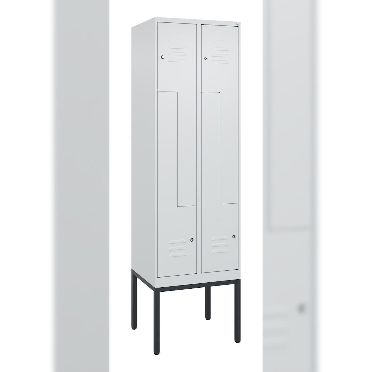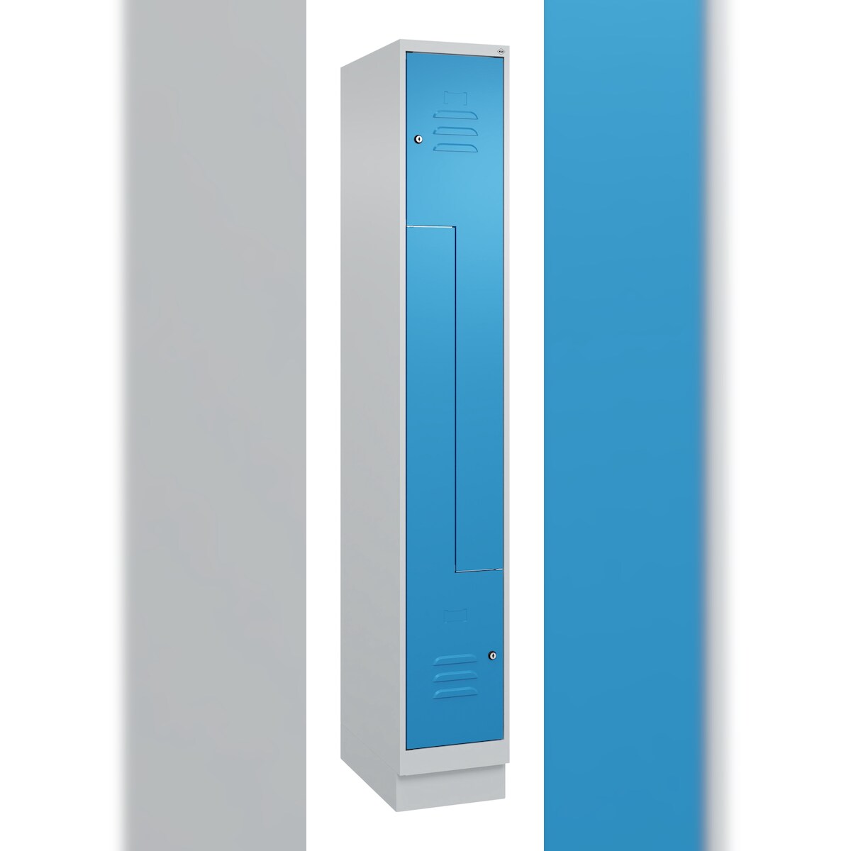 C+P Z-Spind Classic PLUS, Sockel, 2 Abteile, HxBxT 195x30x50cm, Zylinderschloss, Hellgrau/Lichtblau von PROREGAL