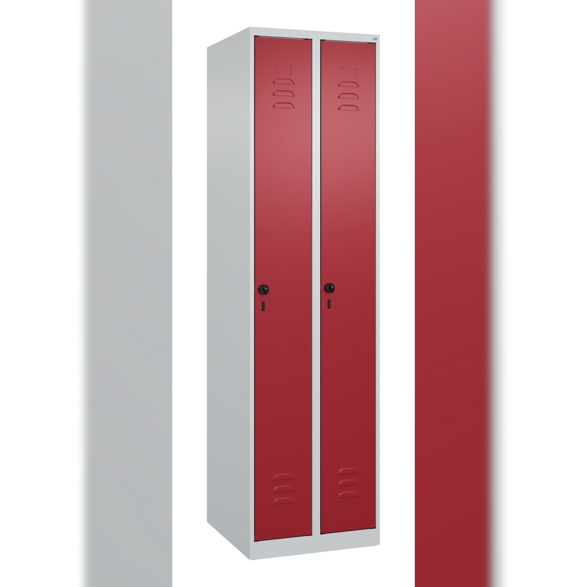 C+P Spind Classic PLUS, 2 Abteile, HxBxT 185x50x50cm, Sicherheitsdrehriegel, Hellgrau/Rubinrot von PROREGAL