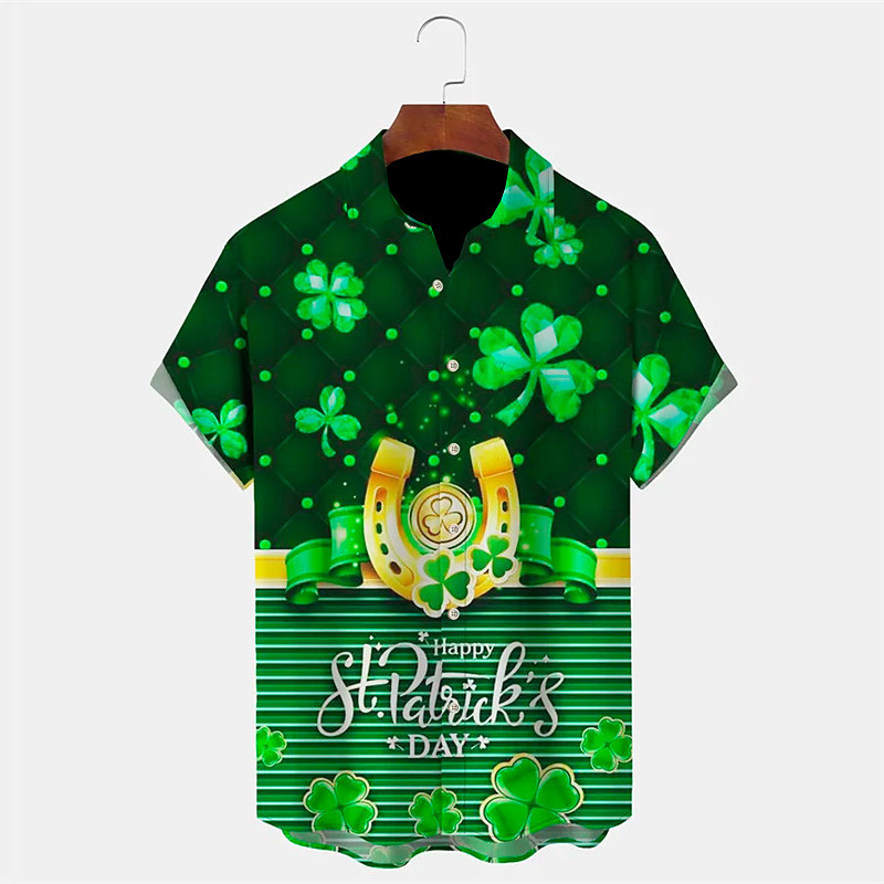 St.Patrick's Day Four Leaf Clover Casual Men's Shirt Daily Wear Going out Weekend Autumn / Fall Turndown Short Sleeves Army Green, Blue, Mint Green S, M, L 4-Way Stretch Fabric Shirt St.