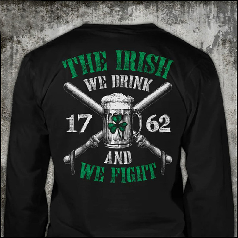 St. Patrick's Day Men's Four Leaf Clover Beer T Shirt Tee Top 100% Cotton Long Sleeve Graphic Shirt Black Comfortable Tee Vacation Street Fashion Designer Clothing