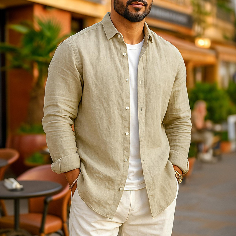 Men's Linen Shirt Summer Shirt Beach Wear Casual Shirt Button Up Shirt Plain Vacation Casual Black White Pink Navy Blue Long Sleeve Lapel N / A Clothing Apparel