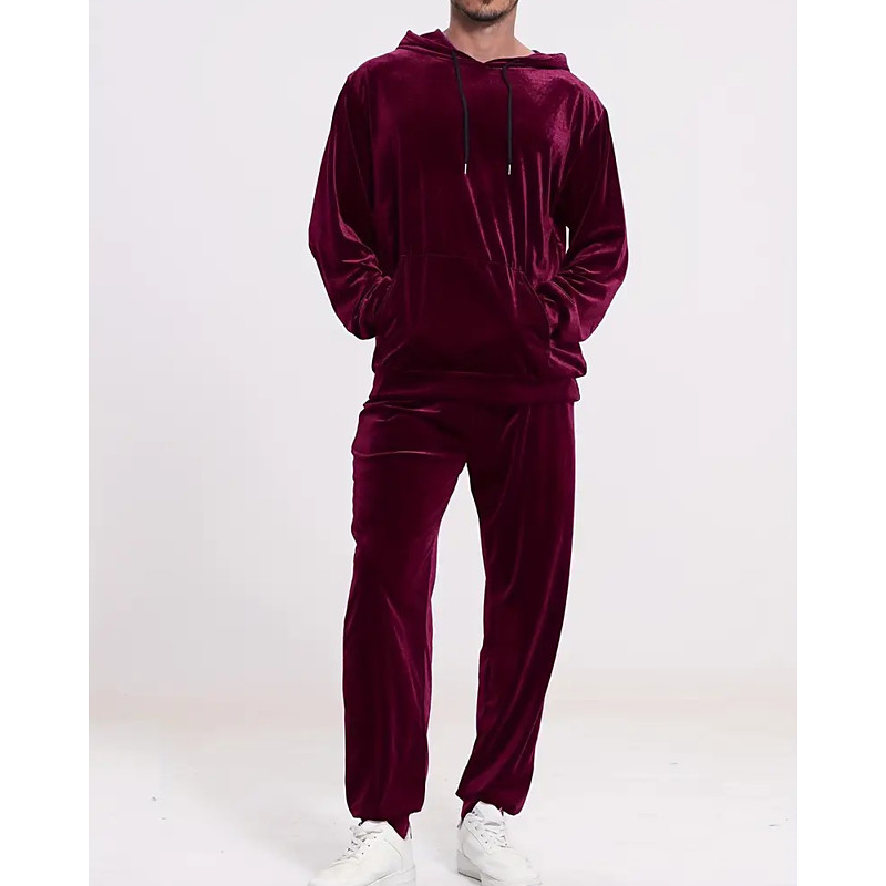 Men's Tracksuit Outfit Set Hoodies Set Hoodie Outdoor Daily Sports Drawstring Pocket Plain Wine Red Black Royal Blue Polyester Activewear Fashion Streetwear Spring