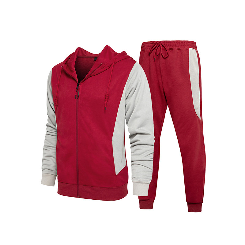 Men's Tracksuit Outfit Set Hoodies Set Hoodie Outdoor Daily Sports Zip Up Pocket Drawstring Plain Wine Red Blue Light Grey Polyester Activewear Fashion Streetwear Fall