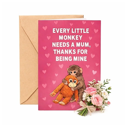 Set di 2 card Punch the Monkey Meme carina per la festa della mamma biglietti d'auguri con illustrazione sentita e busta in kraft ogni piccola scimmia Meme ha bisogno di una mamma a tema animale per