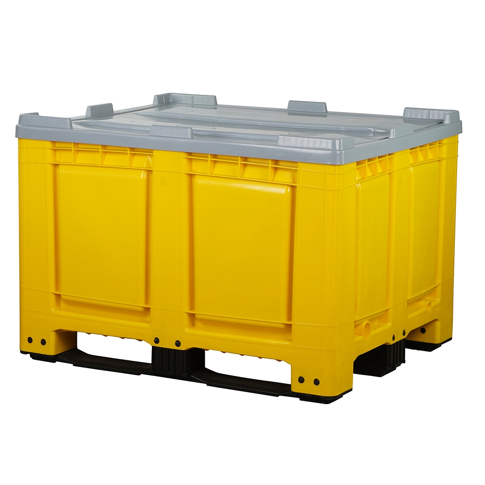 Palettenbox mit Deckel LxBxH: 1200 x 1000 x 790 mm geschlossen mit 3 Kufen in gelb