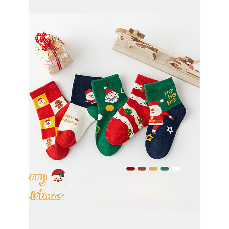 Women's Christmas Socks Set, 5 Pairs with Holiday Tree and Striped Designs, Red, Green White, Perfect for Christmas Gifts