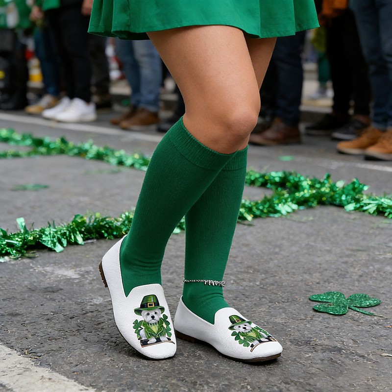 Women's Flyknit Loafers - Breathable Slip-On Shoes with Shamrock Printed, Perfect for St. Patrick's Day Events, Daily Errands, Indoor Gatherings Casual Outings