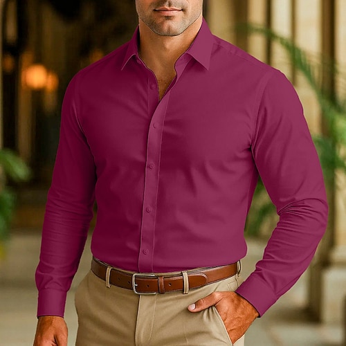 Per uomo Camicia Camicia elegante Camicia non stiro Camicia con Colletto Camicia con Bottoni Semplice Matrimonio All'aperto Nero Bianco Rosa Vino Manica Lunga Collo ripiegato Estate Primavera
