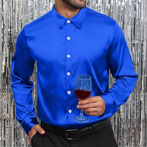 Per uomo Camicia Camicia in raso Camicia elegante Camicia casual Camicia con Bottoni Camicia da Ballo Semplice Formale Matrimonio Nero Bianco Vino Blu reale Manica Lunga Bavero Primavera Autunno