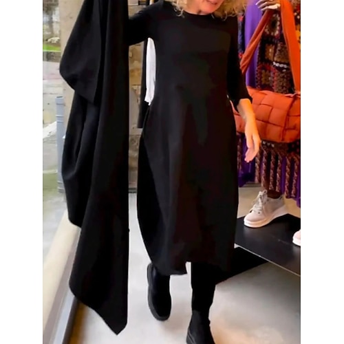 Per donna Abito Midi Vestito T-Shirt Casual Quotidiano Vestibilità regolare Semplice Manica Lunga Girocollo Nero Bianco Vino Marrone Primavera Autunno