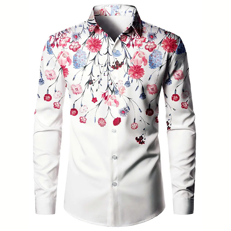 Men's Floral Shirt Long Sleeve Fashion Designer Casual Outdoor Daily Fall Winter Collar Print Button-Down Black Red Purple Green