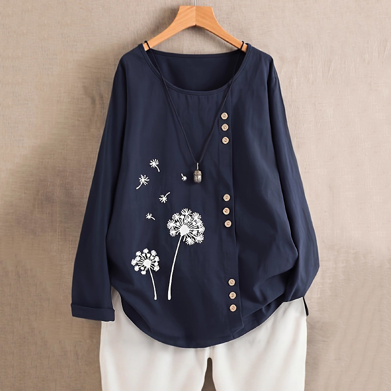 Women's Blouse Floral Vintage Long Sleeve Crew Neck Regular Tops Daily Holiday Going out Buttons Print Navy Blue Summer Spring Fall