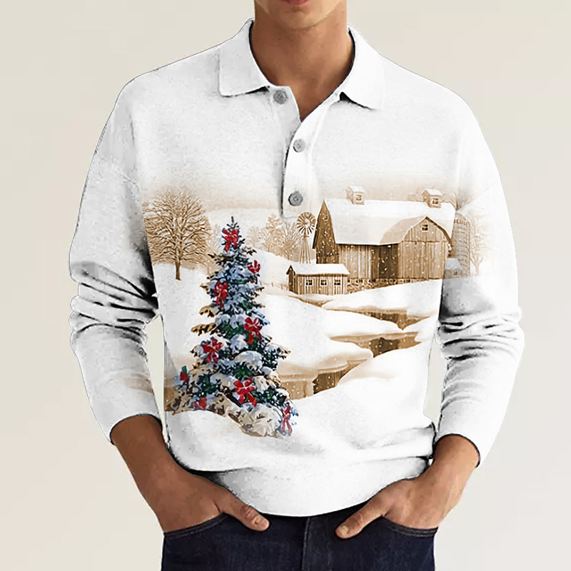 Christmas Men's Christmas Scene 3D Polo Golf Tree Graphic Prints House Turndown Yellow Blue Purple Green Gray 3D Print Street Long Sleeve Print Button-Down Clothing Apparel Fashion Designer Casual