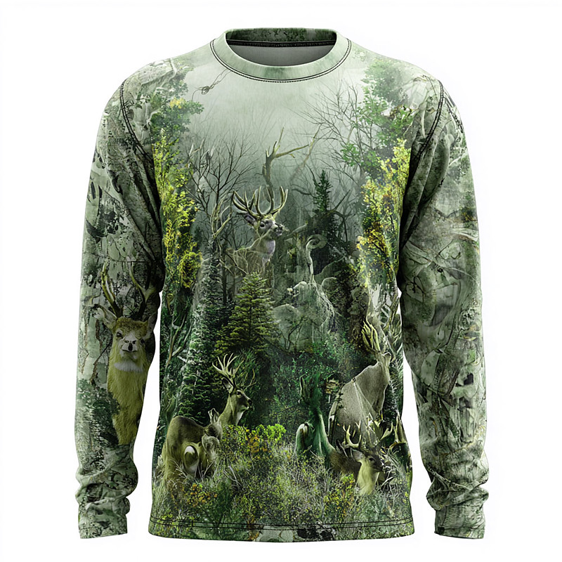 Men's Camo Deer T Shirt Long Sleeve T shirt 3D Print Crew Neck Shirt Fashion Outdoor Street Sports Outdoor Hunting Green 1# Green 2# Green 3# Summer Spring Clothing Apparel S M L XL XXL XXXL
