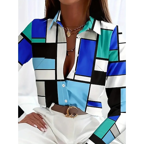 Per donna Camicia Blusa Plaid A Pois Casual Manica Lunga Colletto a Camicia Top Regolari Quotidiano Lavoro Bottoni Stampato Blu Nero Bianco Rosa Cachi Primavera Autunno Inverno