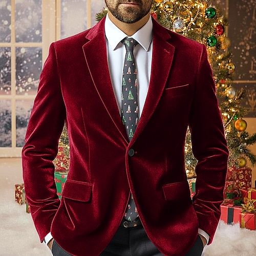 Herren Wintermantel Weihnachtsblazer Samtblazer Formell Täglich Klassisch Winter Herbst Winter Samt Einfarbig Einreihig Ein-Knopf Blazer Burgunderrot Königliches Blau Dunkelgrün