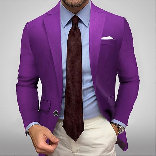 Herren Blazer Smoking Leistung Geschäft Cocktailparty Mode Lässig Frühling Herbst Polyester Einfach Tasche Knöpfe Bequem Einreihig Blazer Silber Schwarz Rote Königliches Blau