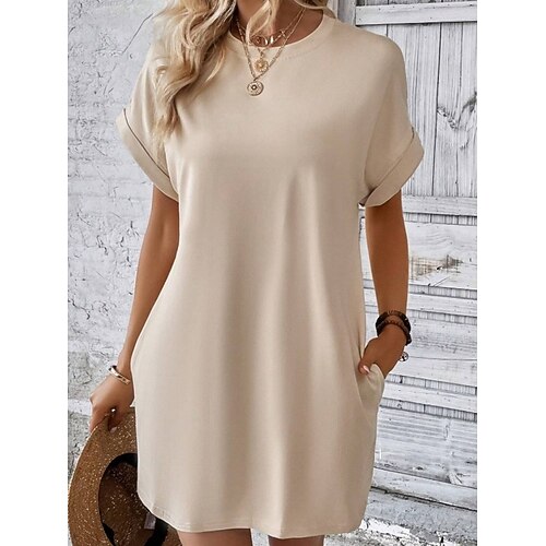 Per donna Mini Abito Vestito T-Shirt Abito Estivo Casual Quotidiano Vestibilità comoda Semplice Manica Corta Scollo a V Blu Nero Marrone chiaro Verde militare Estate