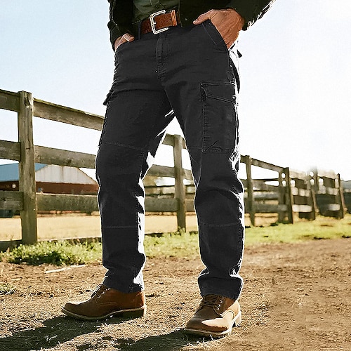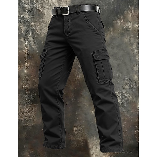 Herren Cargo-Hosen Hose Arbeitshosen Knöpfe Mehrere Taschen Einfach tragbar Volle Länge Outdoor Täglich Campen und Wandern Urlaub Mode Schwarz Armeegrün Unelastisch