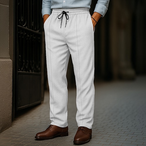 Herren Waffel Hose Baggy-Hosen Knöpfe Einfach tragbar Volle Länge Outdoor Täglich Campen und Wandern Urlaub Mode Schwarz Weiß