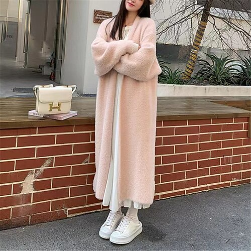 Per donna Felpa Cardigan Elegante Streetwear Casual Tinta unica Scollo a V Lavorato a maglia Manica Lunga Top lunghi Maglia Quotidiano Ferie Uscire Bianco Rosa Autunno Inverno