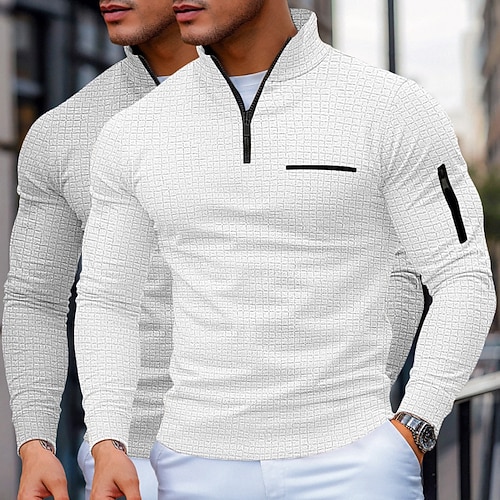 Per uomo Magliette Polo a Nido d'Ape Pullover Sport Outdoor Casuale Zip a un quarto Manica Lunga Moda Moderno Blocco di colori Tasca 2 Pezzi Primavera Autunno Interstagionale Tutte le stagioni