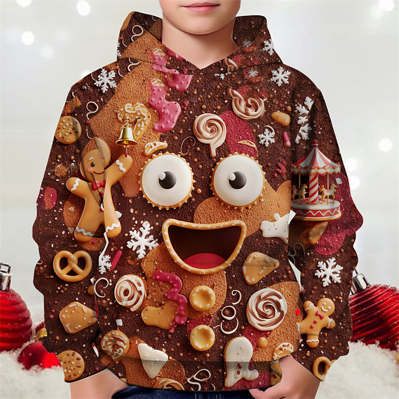 Christmas Boys' 3D Graphic Gingerbread Hoodie Long Sleeve Spring Fall Fashion Streetwear Kids 4-12 Years Hooded Outdoor Casual Daily Regular Fit