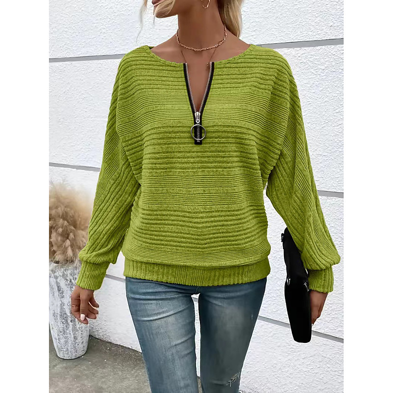 Women's Blouse Solid Color Stylish Casual Long Sleeve Crew Neck Regular Tops Daily Zipper Black Pink Green Khaki Gray Spring Fall Winter