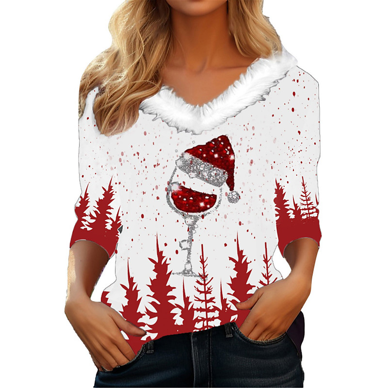 Women's Blouse Stylish Casual Long Sleeve V Neck Regular Tops Daily Patchwork Print White Wine Red Red White Spring Fall Winter