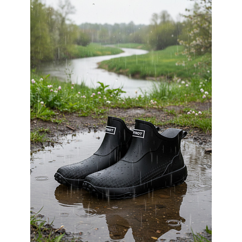 Women's Beige Short Rain Boots - Waterproof Ankle Boots with Non-Slip Traction Sole Minimalist Stylish Design for Rainy-Day Walks, Outdoor Errands, Park Visits Casual Daily Wear