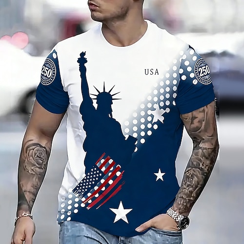 4 luglio 2026 250° Giorno della Memoria Maglietta a Maniche Corte Collo Rotondo Patriottico Patriot Stampa 3D Bandiera USA da Uomo Quotidiano Street