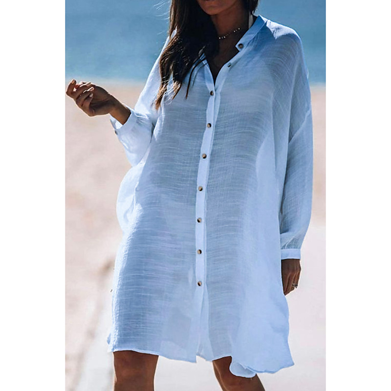 Women's Shirt Cotton Blend Button Up Blouse Plain Modern Casual Long Sleeve Shirt Collar Long Tops Daily Holiday Going out Buttons White Yellow Pink Light Blue Summer